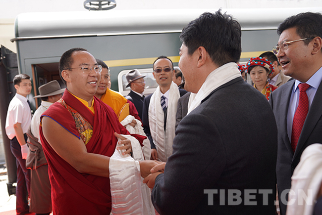 日喀則市有關領導在火車站迎接十一世班禪。攝影:王淑