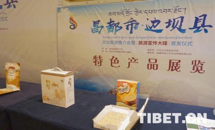 昌都邊壩旅游文化宣傳電視音樂專輯《醉美三色湖?吉祥邊壩》首發(fā)儀式暨文化旅游推介會現(xiàn)場展示的當(dāng)?shù)靥厣a(chǎn)品。攝影:扎西