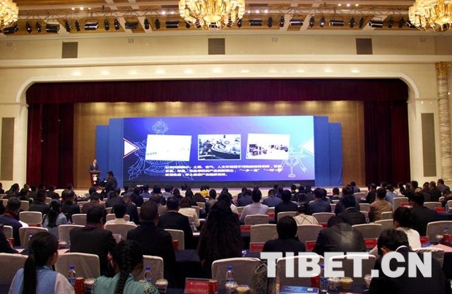 圖為拉薩市政府領(lǐng)導(dǎo)推介拉薩市投資環(huán)境和重點發(fā)展領(lǐng)域