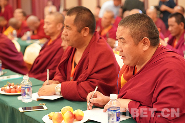 圖為山南市佛教協(xié)會(huì)會(huì)長達(dá)娃次仁發(fā)言。攝影:王淑