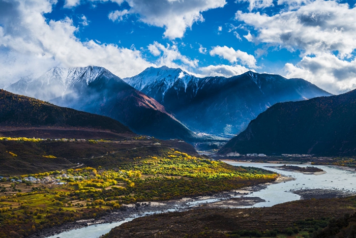 世界第一大峽谷與“中國最美山峰”南迦巴瓦的相互依存,更增添了神秘感及迷人魅力。尋一處可以看山看峽谷的村落,一早一晚守候日出日落,仿佛窺見了峽谷的靈動與生機,再平凡的時光都變得浪漫了起來。