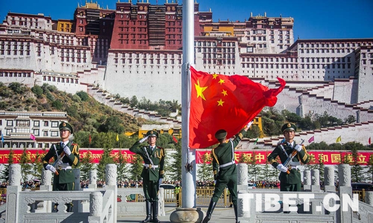 圖為布達拉宮廣場上的升國旗儀式。攝影:趙耀。