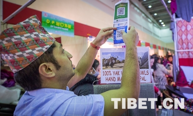 在Sushil Bhatta的展位旁,除了整齊擺放著各種款式的尼泊爾圍巾以外,兩張高高懸掛的紙張引起了記者的注意。這是他提前打印出的支付寶和微信收款的二維碼?!拔矣梦⑿乓呀?jīng)快六年了,微信用起來(lái)非常方便?!?/p>
