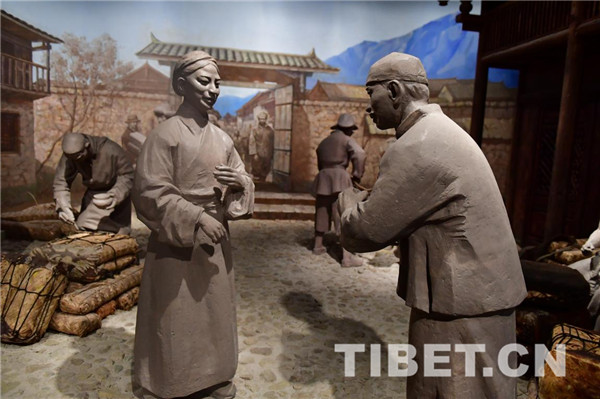 300多年前,康熙帝“行打箭爐市,蕃人市茶貿(mào)易”的一紙王命改變康定的命運,茶馬互市讓這片荒灘變成了西陲重鎮(zhèn)。在甘孜藏族自治州博物館里,學(xué)員們看到了當(dāng)年康定茶馬互市集散地“鍋莊”的場景還原。內(nèi)地靠人背、馬馱而來的茶葉到了這里便要換牦牛運送進(jìn)入藏區(qū),而內(nèi)地茶葉打包的形狀不適合藏區(qū)牦牛背馱,茶葉要重新打包,人們也要落腳休息,“鍋莊”就是這樣形成的。與此同時,人們在鍋莊閑暇娛樂時所跳的舞蹈也被命名為“鍋莊舞”,一直傳承至今。