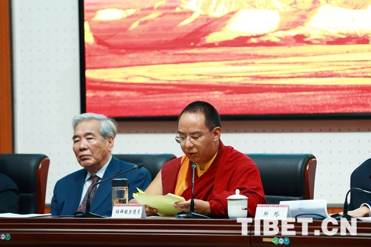 圖為十一世班禪在研討會(huì)上講話。攝影:陳衛(wèi)國(guó)