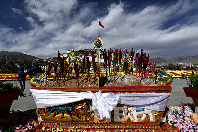 圖為布達(dá)拉宮廣場上擺放的切瑪盒。