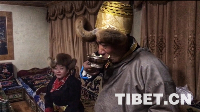 圖為藏歷新年初一,索朗旺堆老人和家人歡度藏歷新年。