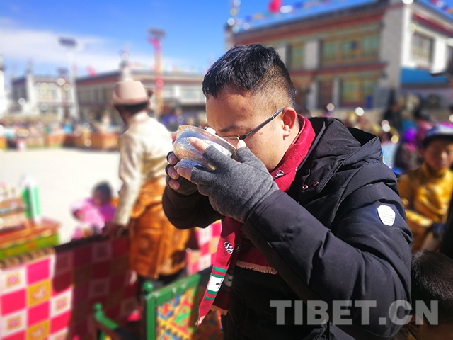 圖為游客品嘗青稞酒。
