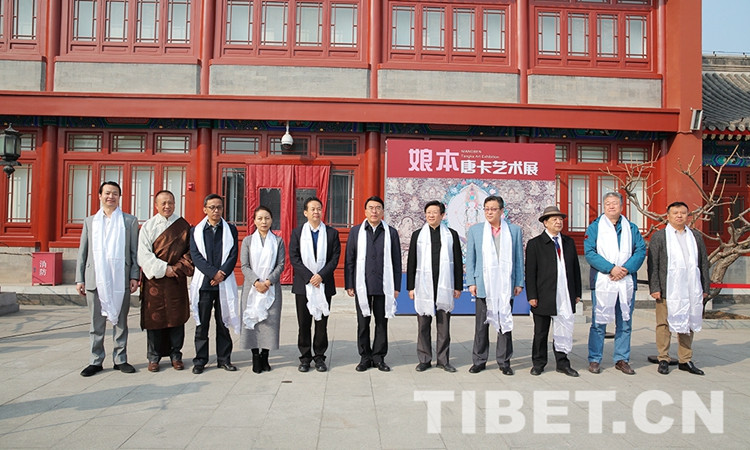 中國西藏網訊 3月1日,娘本唐卡藝術展在北京西黃寺博物館開幕。圖為開幕式現場。攝影:楊月云