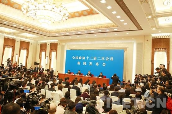 圖為全國政協(xié)十三屆二次會(huì)議新聞發(fā)布會(huì)現(xiàn)場(chǎng)。攝影:陳衛(wèi)國