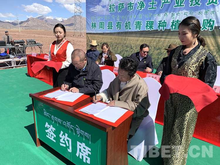 中國西藏網(wǎng)訊 4月23日,拉薩凈土產(chǎn)業(yè)集團(tuán)在林周縣舉行有機(jī)青稞種植收購示范項(xiàng)目簽約啟動(dòng)儀式。