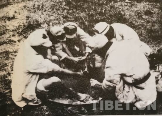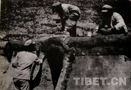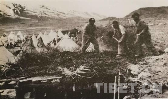 隨后,根據(jù)領導指示,各大隊沿山坡兩邊挖掘坑洞。4月的甘孜,有些凍土還沒化,必須先點燃草根將土層凍土融化,才比較好挖土地。接著是準備修建窯洞所需的“建筑材料”,到離宿營地數(shù)十里外的山林里砍樹。用這些木材鋪頂,上面鋪上帳篷布,再堆上泥土。這樣建成的窯洞,倒也冬暖夏涼。修建窯洞群的戰(zhàn)士們頗為自豪地稱其為“康藏大廈”。