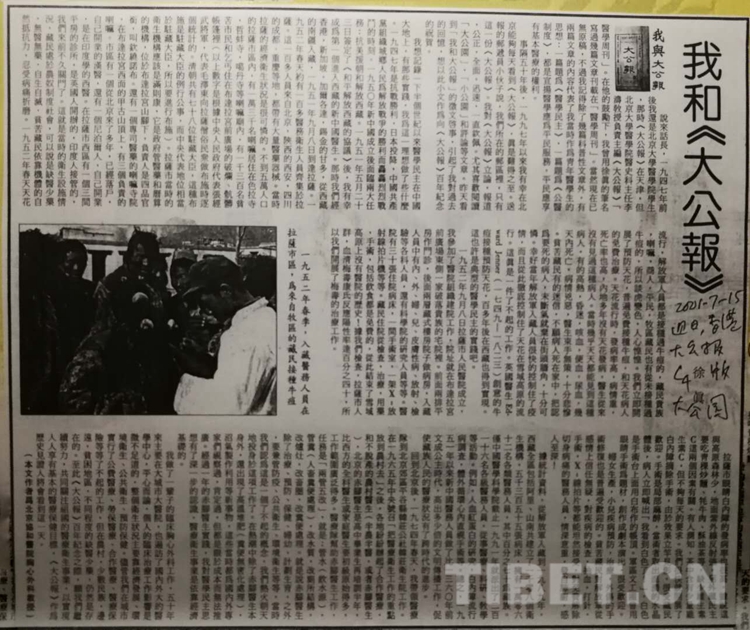 “時間相隔51年后,我看到了湛藍(lán)的天空,濃密的白云,錦帶般的雪山,碧綠的湖水,歡快流暢的拉薩河,和一個與內(nèi)地一樣現(xiàn)代化生機勃勃的城市,活躍著眾多陌生面孔的人群。過去那個落后、陳舊的拉薩,和我熟識的人們將永遠(yuǎn)留在我寶貴的相冊里了!”