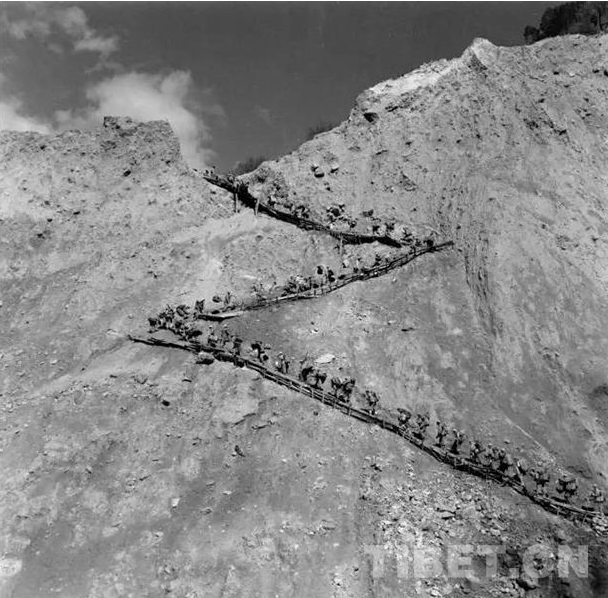圖為《翻越泥巴山——十八軍向太昭進軍》。1951年9月 攝影:藍志貴