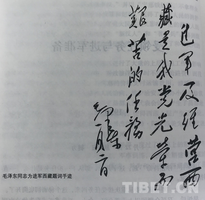 圖為毛澤東同志為進軍西藏題詞手跡。翻拍:王媛媛