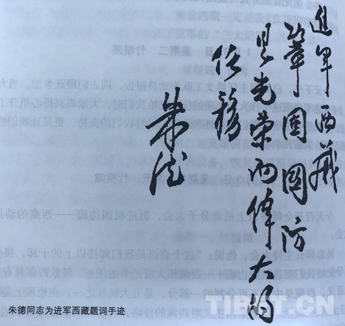 圖為朱德同志為進軍西藏題詞手跡。翻拍:王媛媛