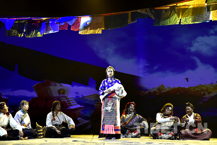 中國西藏網訊 “愿得此身長報國,何須生入玉門關。”5月14日晚,拉薩市第二中等職業(yè)技術學院學生活動中心里,隨著舞臺上的燈光漸漸照亮全體演員,掌聲、歡呼聲響徹全場。西藏自治區(qū)話劇團原創(chuàng)話劇《共同家園》在這里進行的第一場專場演出圓滿落幕。