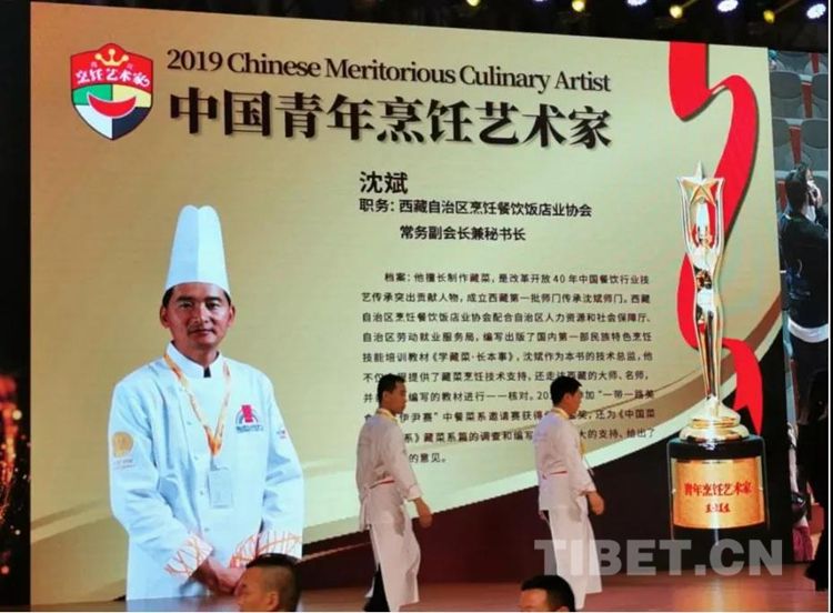 圖為在2019烹飪藝術(shù)家年會(huì)上,沈斌被授予“中國(guó)青年烹飪藝術(shù)家”稱號(hào)。西藏烹飪餐飲飯店業(yè)協(xié)會(huì)供圖