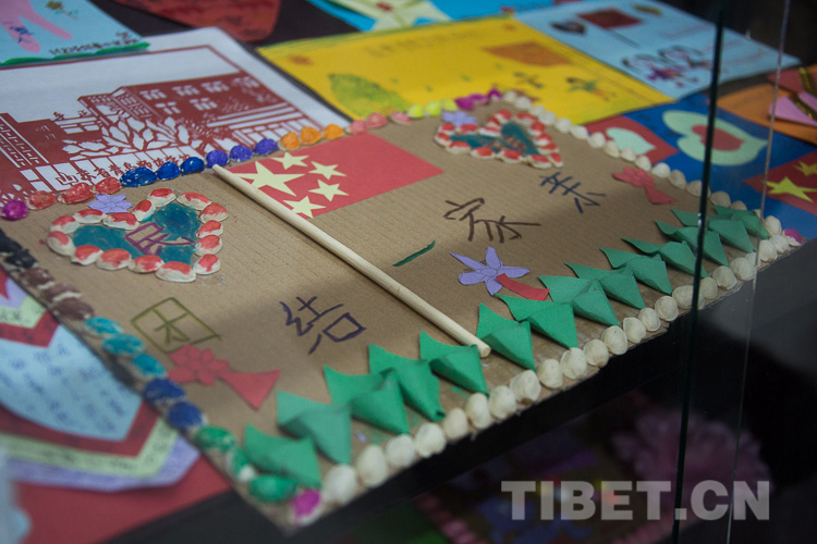圖為學生制作的民族團結(jié)一家親手工作品。攝影:趙耀