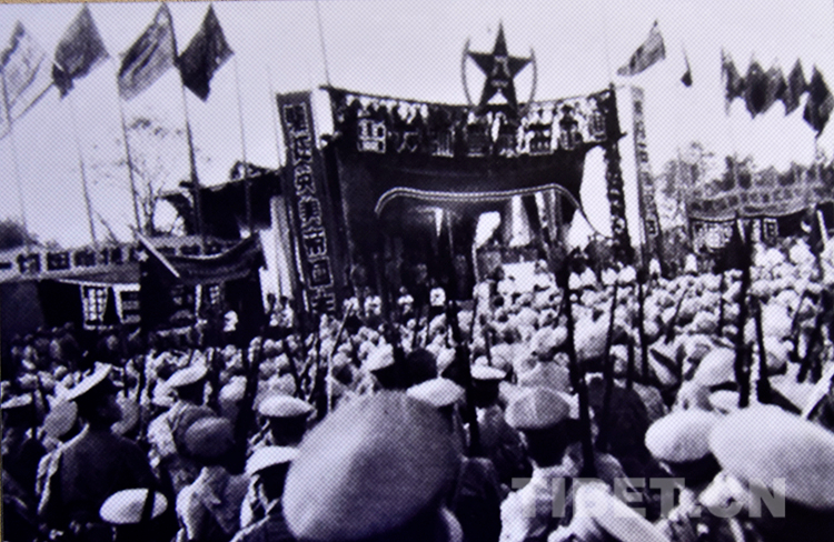 圖為十八軍在樂山舉行進(jìn)軍西藏誓師大會。翻拍:王媛媛