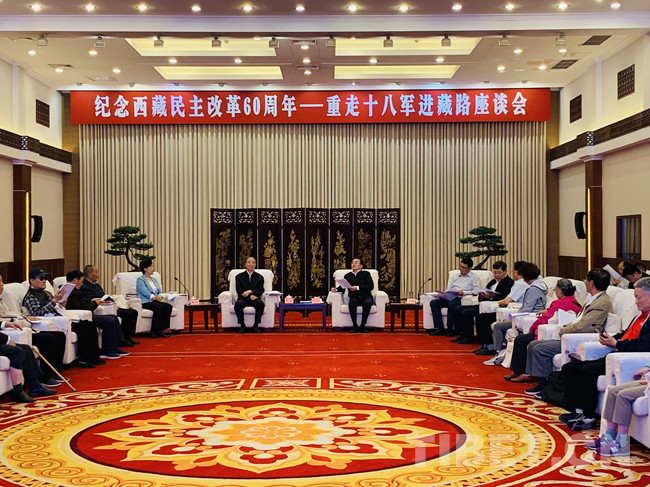 中國西藏網(wǎng)訊 5月28日,由中國西藏文化保護(hù)與發(fā)展協(xié)會(huì)、四川省委統(tǒng)戰(zhàn)部主辦,四川省委藏區(qū)辦、中國西藏雜志社承辦的“紀(jì)念西藏民主改革60周年——重走十八軍進(jìn)藏路”座談會(huì)在四川省成都市舉行。中央統(tǒng)戰(zhàn)部有關(guān)領(lǐng)導(dǎo)、四川省委省政府有關(guān)領(lǐng)導(dǎo)、十八軍老戰(zhàn)士及其后代、涉藏研究知名專家學(xué)者、四川省直有關(guān)單位和藏區(qū)有關(guān)州縣負(fù)責(zé)同志、新聞媒體共約100余人參加此次會(huì)議。四川省委常委、統(tǒng)戰(zhàn)部長(zhǎng)田向利主持會(huì)議。