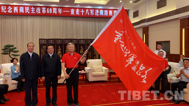 圖為重走十八軍進(jìn)藏路活動(dòng)授旗儀式。