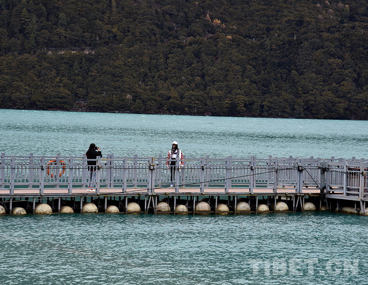 圖為游客在西藏自治區(qū)林芝市境內(nèi)的巴松錯拍照。 攝影:王媛媛