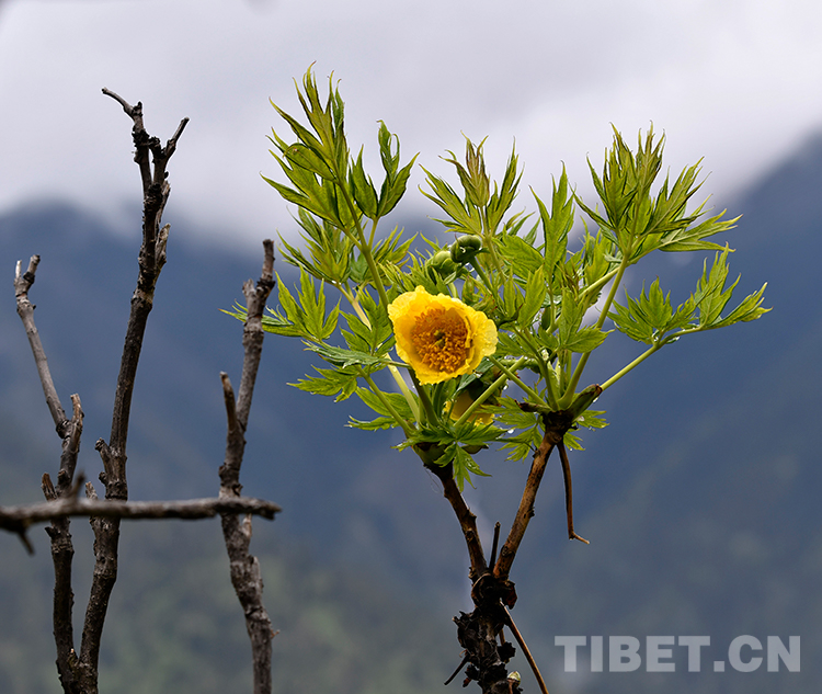 圖為西藏自治區(qū)林芝市米林縣境內(nèi)盛放的大花黃牡丹。攝影:王媛媛
