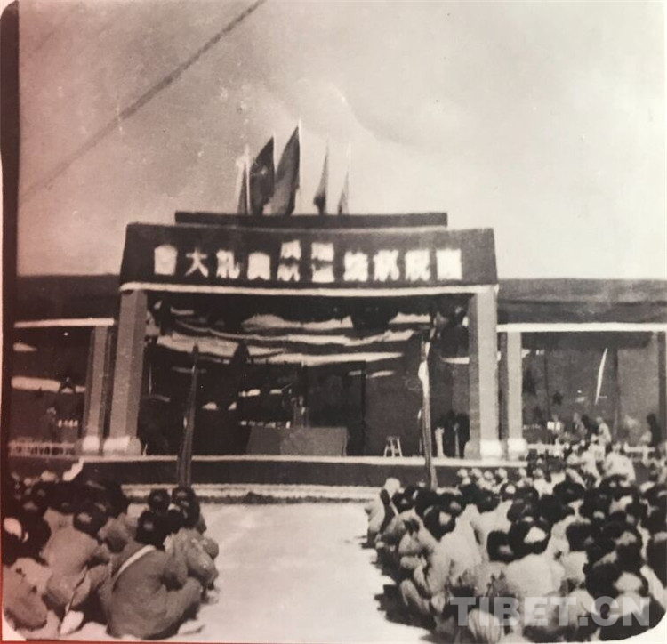 圖為機(jī)場修建政治部洪(流)主任致開幕辭。 翻拍:龍真多吉