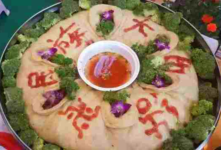 吃“團(tuán)結(jié)包子”時(shí),進(jìn)餐的人們圍坐在一起,把冒著騰騰熱氣、散發(fā)著濃濃香味的包子擺在桌子中央,然后每人面前放上一個(gè)小碟子,碟子里盛上蘸水。除此之外,還要打出一壺濃釅的酥油茶。