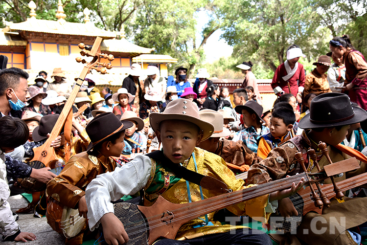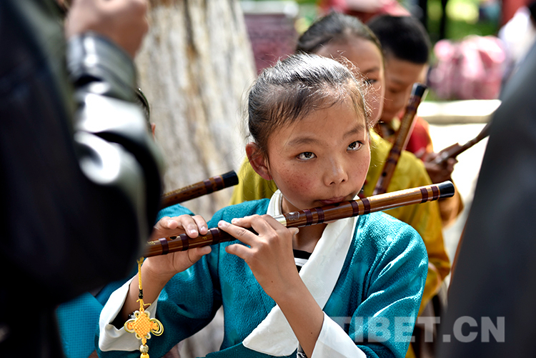 中國西藏網(wǎng)訊 6月16日,西藏自治區(qū)堆龍德慶區(qū)青少年活動(dòng)中心春季課程展演活動(dòng)在嗩吶演藝的《好漢歌》中拉開序幕。此時(shí),羅布林卡藏戲演出臺前已聚攏了許多家長和市民。