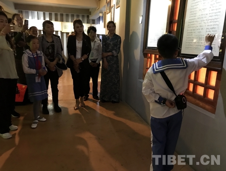 圖為小小講解員在根敦群培紀念館為參加活動的黨員進行講解