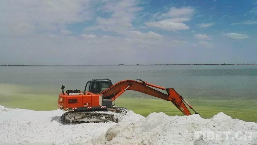 圖為察爾汗鹽湖湖畔正在工作的挖掘機 攝影:劉莉
