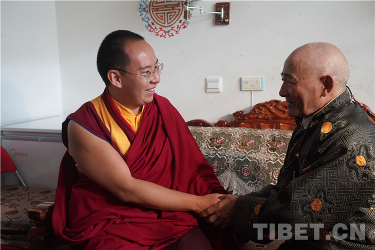 十一世班禪在參加各項(xiàng)活動(dòng)期間,專程看望阿里地區(qū)“雙集中”供(收)養(yǎng)服務(wù)中心的老人和孩子們,并為每一位老人摸頂賜福,噓寒問暖,給老人和孩子們帶去了親人般的關(guān)懷。一位老阿媽(嬤啦)當(dāng)場(chǎng)緊緊拉著十一世班禪的手放在自己的額頭,感動(dòng)流淚,嘴里不停地說“突吉其,突吉其”(謝謝!謝謝?。?。十一世班禪和老人們圍坐在一起飽含深情地說:“在黨中央的關(guān)心關(guān)懷下,老人家弱有所扶、老有所養(yǎng)、病有所醫(yī)、住有所居,這充分體現(xiàn)了社會(huì)主義制度的無比優(yōu)越性,看到你們健康幸福的生活我很欣慰,我會(huì)為你們祈禱,我會(huì)再來看望你們。”充滿溫情的一幕使在場(chǎng)人員無不動(dòng)容。