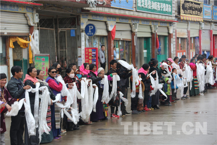 恰逢“羌塘恰青格薩爾賽馬藝術(shù)節(jié)”開幕,各地的僧俗信教群眾從方圓幾百公里的牧區(qū)趕來,他們身著盛裝,手捧哈達(dá),滿含期待地在那曲市道路兩邊恭迎全國(guó)政協(xié)常委、中國(guó)佛教協(xié)會(huì)副會(huì)長(zhǎng)、中國(guó)佛教協(xié)會(huì)西藏分會(huì)會(huì)長(zhǎng)班禪額爾德尼?確吉杰布重返家鄉(xiāng)那曲。