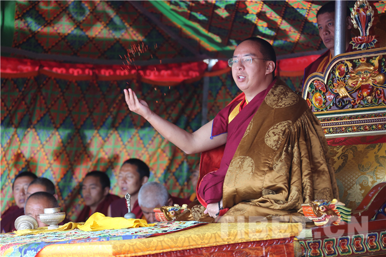 圖為十一世班禪為信教群眾舉行長(zhǎng)壽灌頂 攝影:扎西