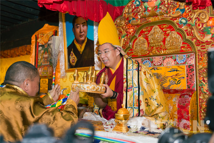 圖為十一世班禪為僧眾舉行長(zhǎng)壽灌頂 攝影:王淑
