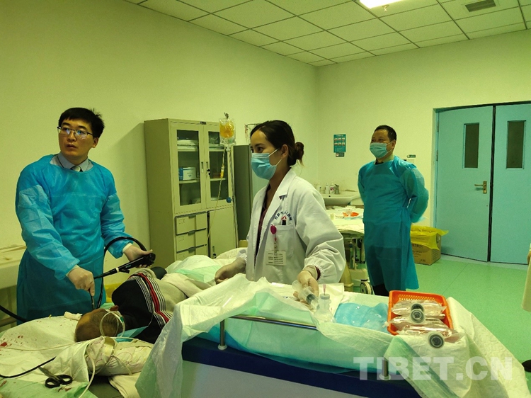 8月15日是我離京援藏整一個月的日子,我接到了來藏后第二個院際會診任務(wù)?;颊呤且晃?0多歲的中年男性,大出血,生命垂危?;颊呒韧呀?jīng)做過胃大部切除,再做手術(shù)的機會也不大,因此是否能成功止血關(guān)系到患者生死。這位患者鏡下出血很是兇猛,術(shù)后解剖結(jié)構(gòu)改變,鏡下止血很是困難,中間甚至想過放棄,但是放棄就意味著最壞的結(jié)局。