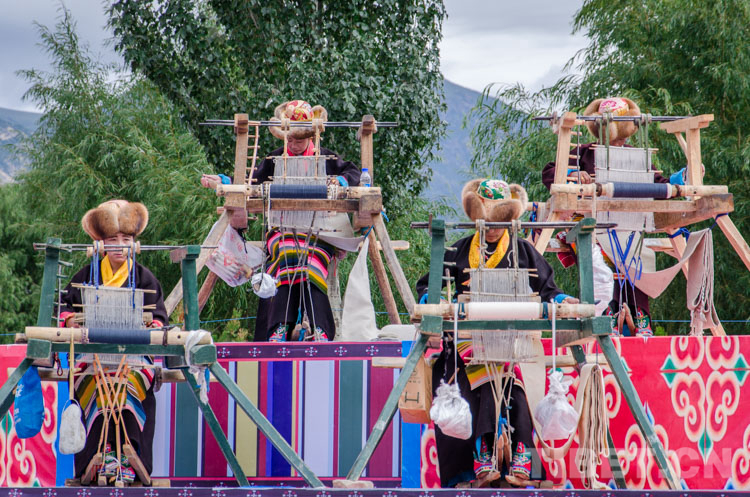 圖為開幕式上被搬上舞臺(tái)的氆氌紡織技藝 攝影:趙耀