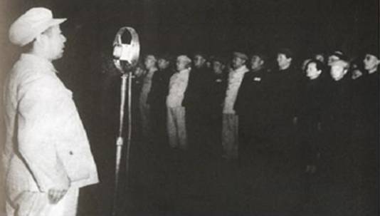 圖為參加中國人民政治協(xié)商會(huì)議第一屆全體會(huì)議的代表在天安門廣場舉行“人民英雄紀(jì)念碑”奠基典禮,周恩來代表主席團(tuán)在奠基儀式上致詞 圖片來源:人民網(wǎng)