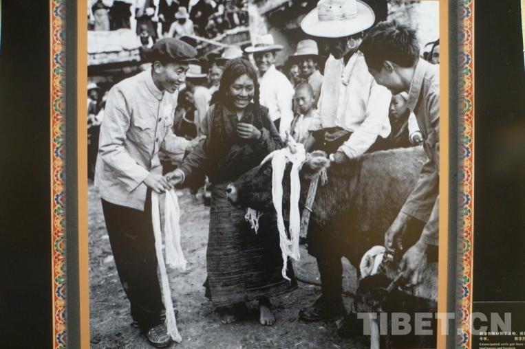 圖為1959年拉薩街頭的“小乞丐”卓瑪(中)分到土地和牲畜 攝影:陳宗烈 翻拍:孫健