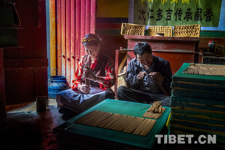 圖為拉薩市尼木縣吞巴村百姓依靠藏香讓生活越來(lái)越好 攝影:唐集晶