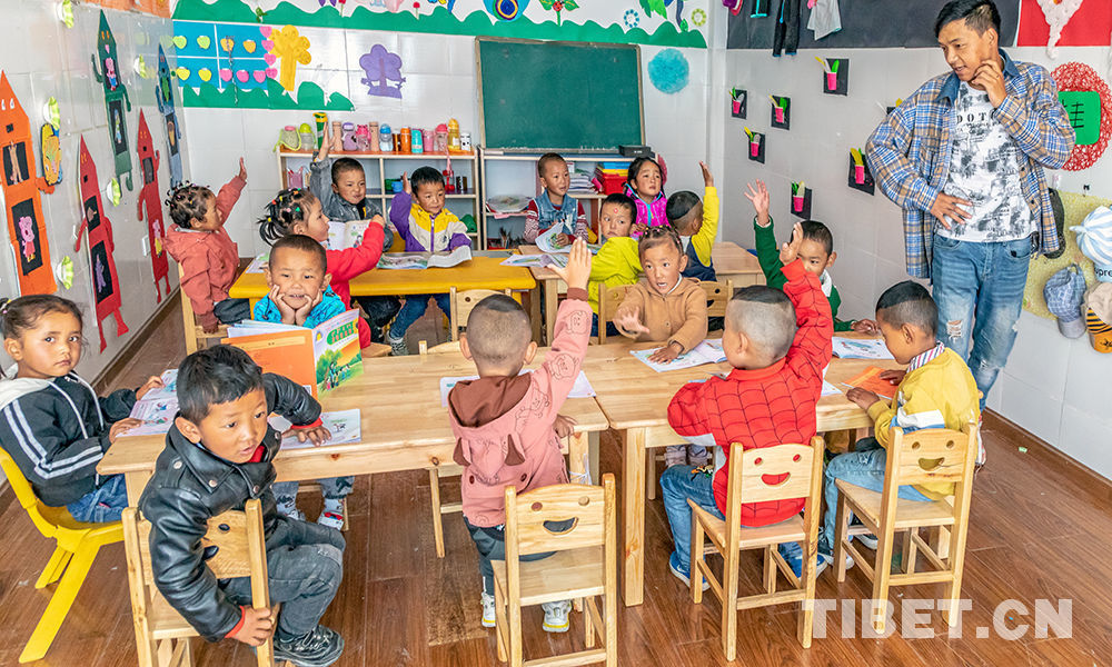 圖為山南市乃東區(qū)頗章鄉(xiāng)完小附設(shè)雙語(yǔ)幼兒園的孩子們 攝影:曲業(yè)芝