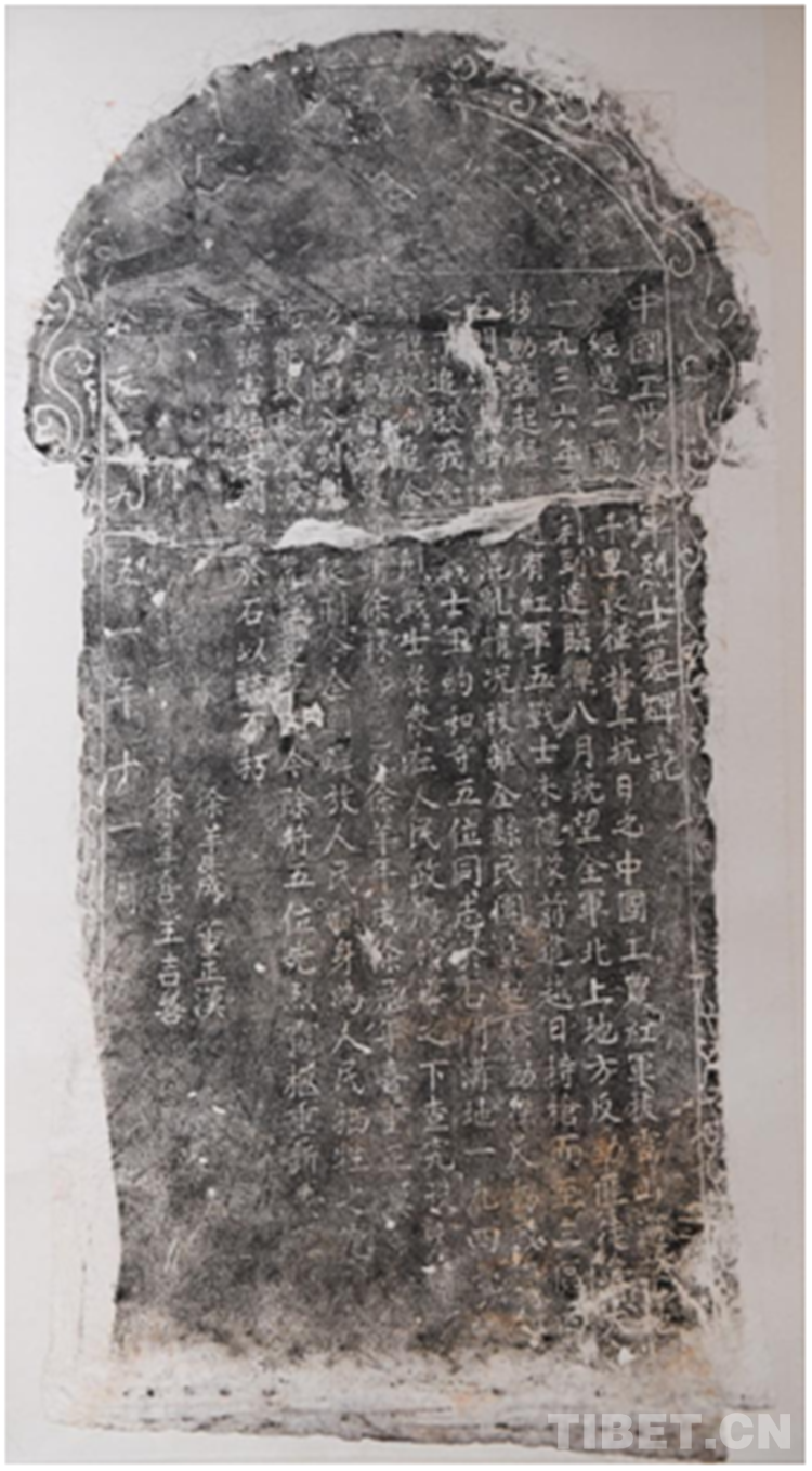 展覽中還有一幅與紅軍過雪域有關(guān)的展品——《中國工農(nóng)紅軍烈士墓碑》(1951年)拓片。碑文記錄了這樣一段歷史:1936年,中國工農(nóng)紅軍長征北上抗日到達臨潭(今甘肅省甘南藏族自治州臨潭縣)時,紅軍戰(zhàn)士王約如等5位戰(zhàn)士在石門溝犧牲。1949年,這5位戰(zhàn)士被追念為先烈戰(zhàn)士,人民政府查究兇手,重新安葬了英烈戰(zhàn)士靈柩。