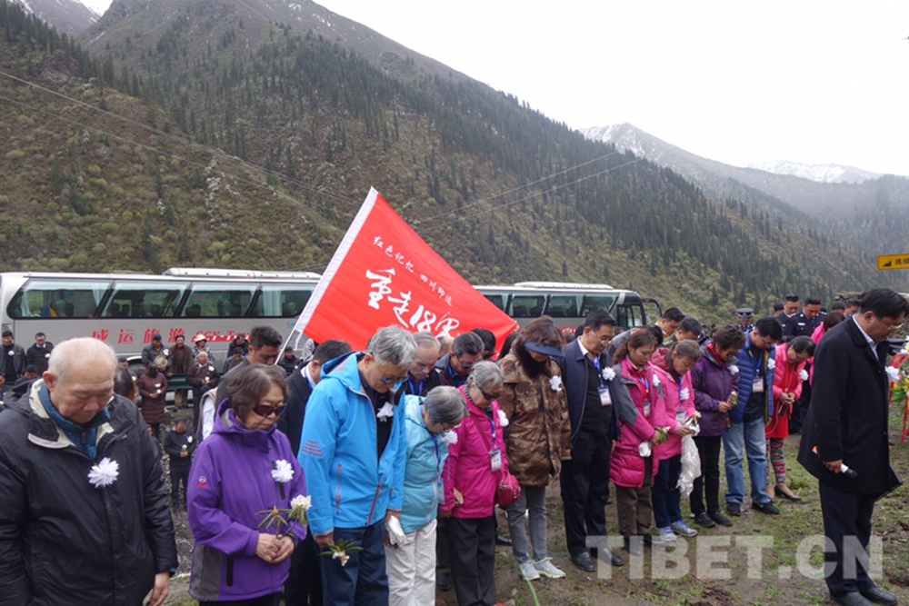 圖為十八軍老戰(zhàn)士和十八軍后代們在十八軍進(jìn)藏的無名女兵墓前敬獻(xiàn)花籃并默哀