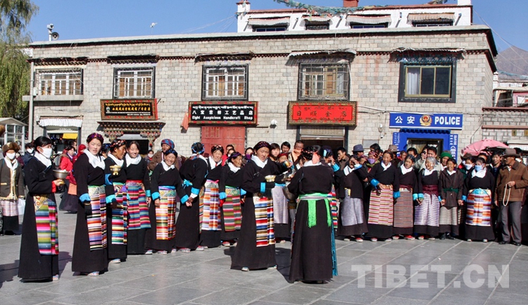 圖為大昭寺廣場上不時(shí)能看到慶祝節(jié)日的歌舞