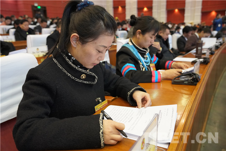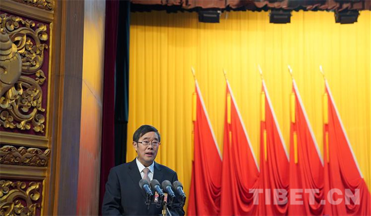 圖為西藏自治區(qū)政協(xié)副主席高揚(yáng)代表政協(xié)第十一屆西藏自治區(qū)委員會常務(wù)委員會向大會報告工作。攝影:王淑