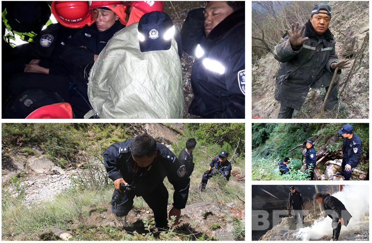 圖為安康與同事們在執(zhí)行各種任務(wù)時(shí)的畫面。其中,左上圖為安康(右一)與同事野外執(zhí)行任務(wù)時(shí)就地和衣小憩;右上圖為執(zhí)行任務(wù)中的安康渾身是泥;左下圖為安康帶隊(duì)爬山開展案件調(diào)查;右下圖為安康在執(zhí)行任務(wù)時(shí)責(zé)令違法人熄滅火點(diǎn)。