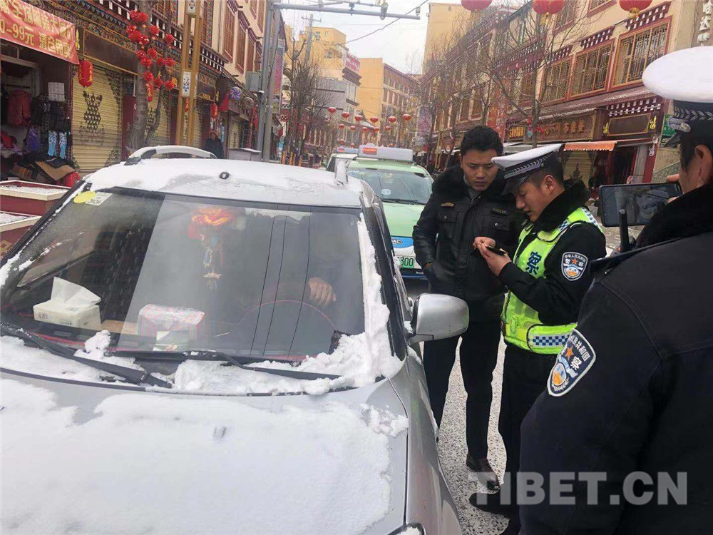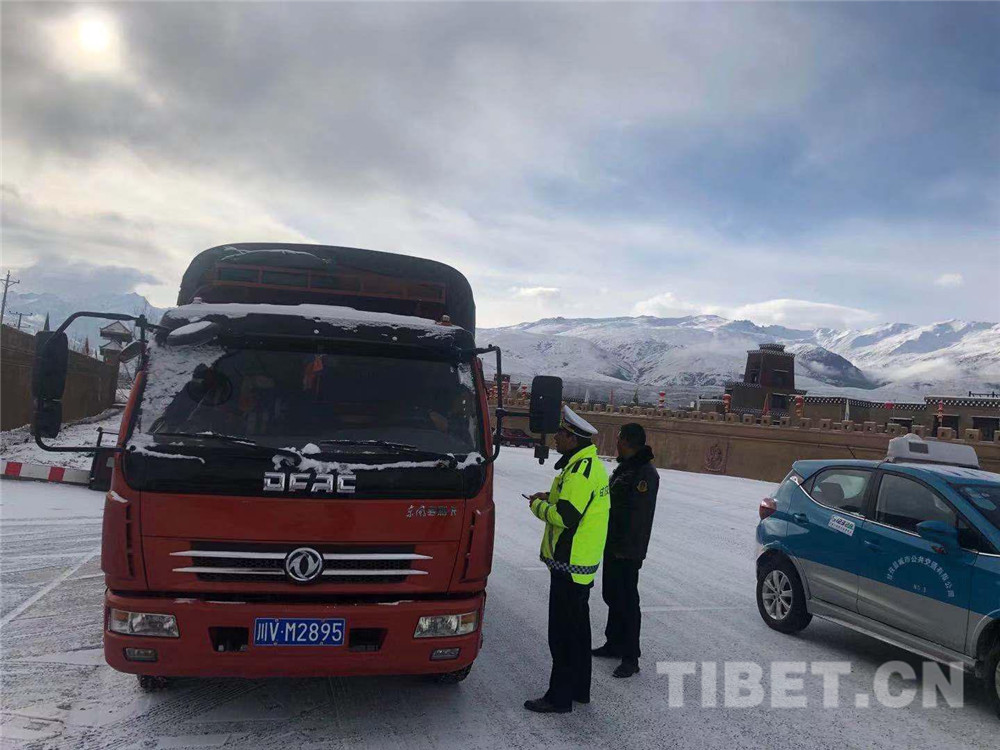 圖為甘孜縣公安交警大隊對來往車輛進(jìn)行檢查