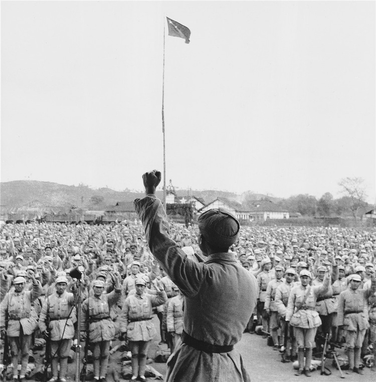 圖為《第十八軍在樂(lè)山舉行進(jìn)軍西藏誓師大會(huì)》1950年3月7日 攝影:藍(lán)志貴